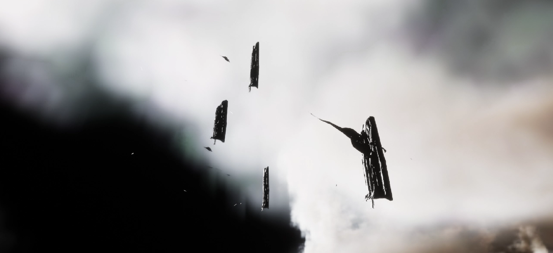 The scattered remnants of the house are disordered and almost disturbingly smooth. In its pursuit, the work gradually transitions to an abstract state, where the rooms have coalesced into a state of pure chaos. The juxtaposition of black and white geometric forms with the distorted spatial elements serves to underscore the inherent tension between order and disorder in the artistic process.